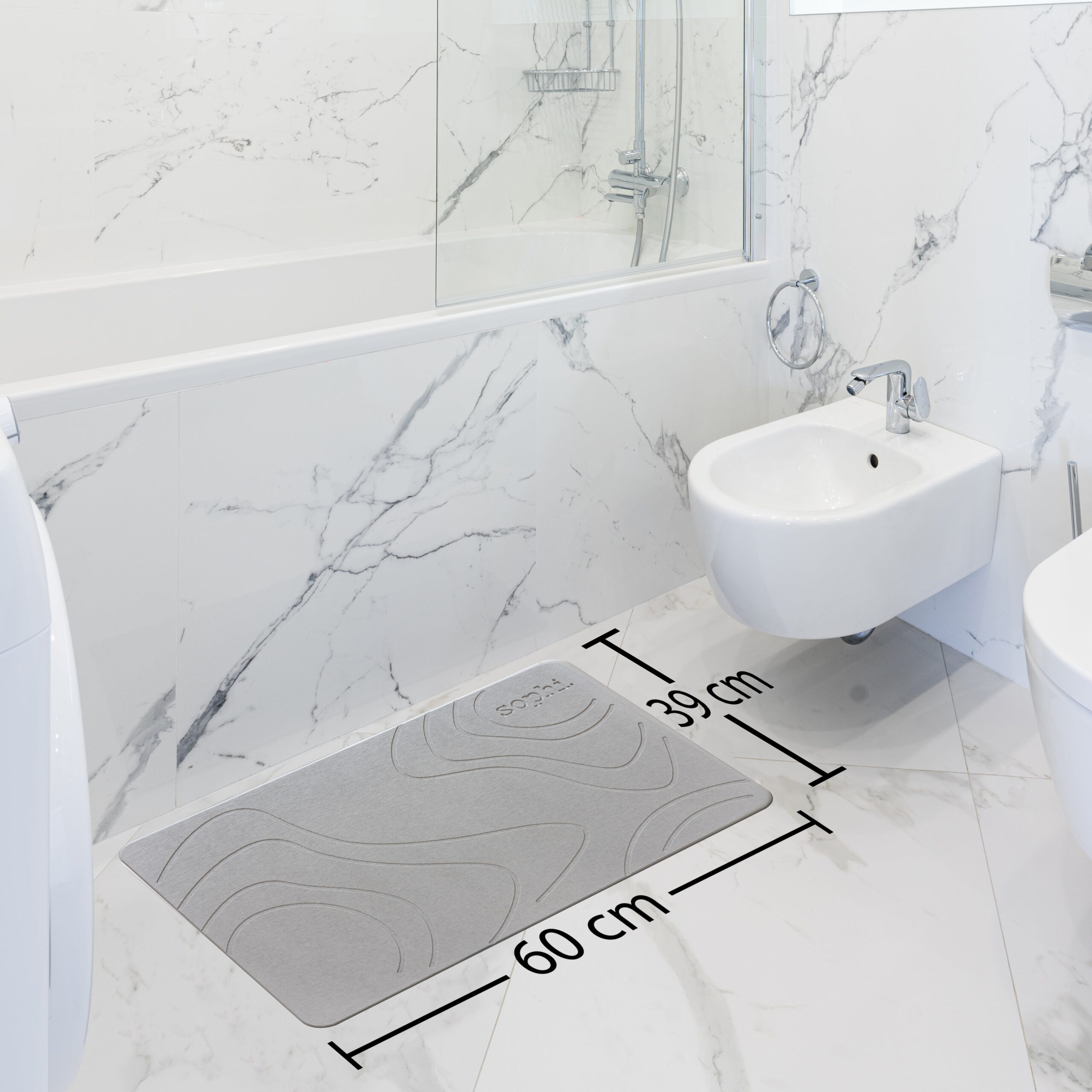 Nebepalikite pėdų savo vonios kambaryje! Greitai džiūvantis, neslidus akmens vonios kilimėlis nusausins kojas.