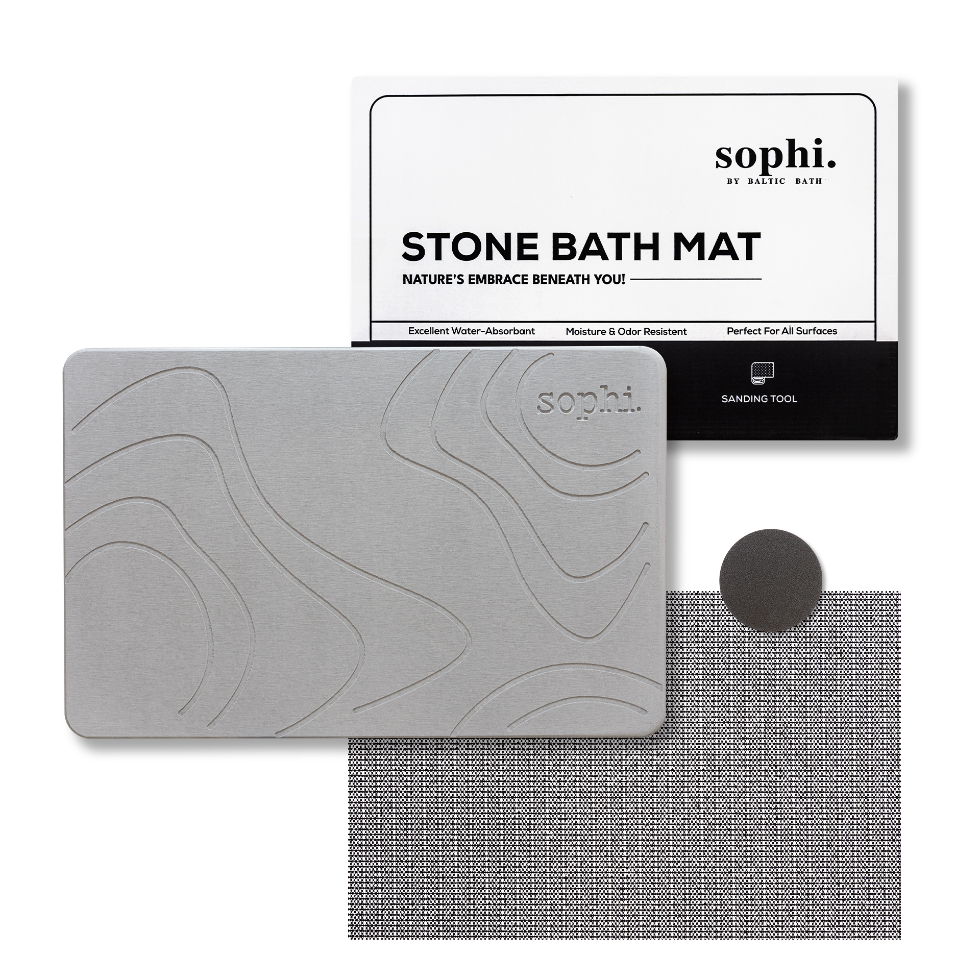 Atsibodo šlapios, slidžios grindys vonioje? Įsigykite Sophi vonios kilimėlį ir pamirškite apie šlapias pėdas! Tiek Jūsų pėdos, tiek vonios grindys kaipmat bus sausos.